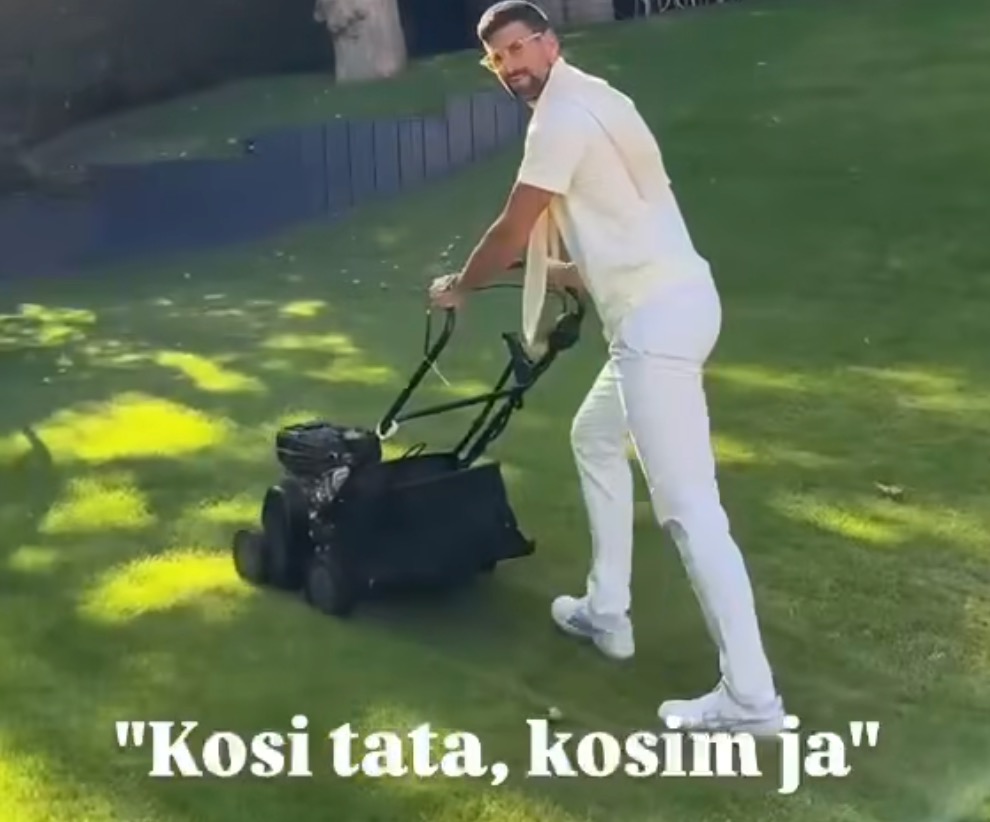 Novak Đoković, legenda srpskog i svetskog tenisa, pokazao je i svoje veštine van terena. Na društvenim mrežama podelio je fotografije na kojima kosi travu na kompleksu Vimbldona, obučen u elegantno belo odelo.