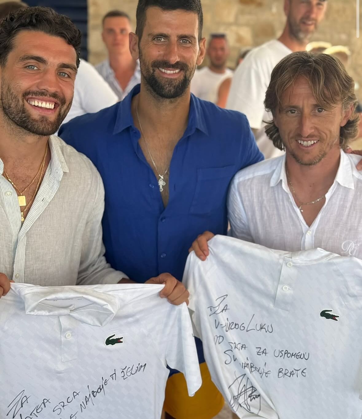 Na jednoj od hrvatskih plaža, Đoković je viđen u društvu legendarnog fudbalera Luke Modrića, jednog od najboljih hrvatskih fudbalera u istoriji i najtrofejnijeg igrača Real Madrida. Pored Modrića, društvo su mu pravili i Mateo Kovačić, aktuelni igrač Mančester sitija, kao i Aleksander Čeferin, predsednik UEFA.